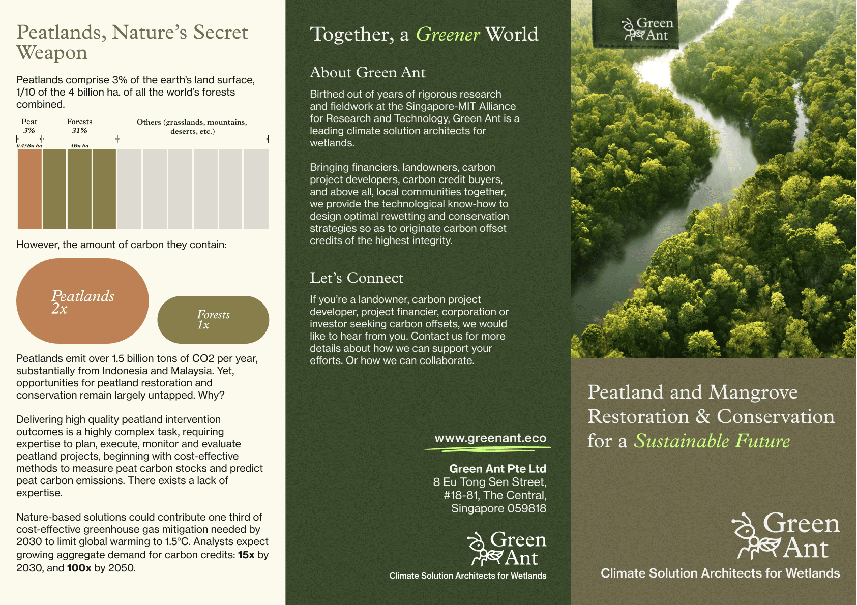 Multi-Channel Information Design: Recognising that a simple UI cannot communicate a complex scientific methodology alone, I developed a hybrid physical-digital strategy. Here, I designed the marketing collaterals to serve as the "technical primer." The brochure handles the heavy lifting of explaining the methodology and the importance of future precision (i.e. strict verification with established carbon registries such as Verra or Gold Standard), allowing the UI to remain clean, focused, and high-converting.