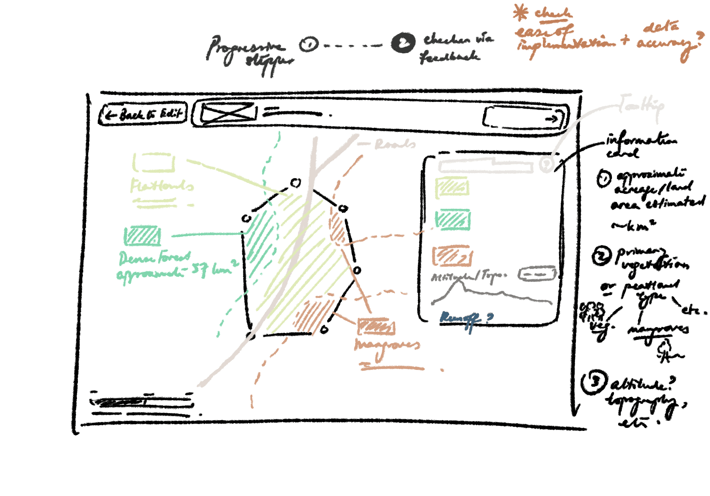 I proposed an adaptive feedback loop that provides real-time spatial context — such as acreage and vegetation density — immediately after a user maps out an area. This prompts an "internal audit," which serves to invite landowners and carbon project developers to verify the approximately-mapped AOI against their real-world knowledge before further submission.